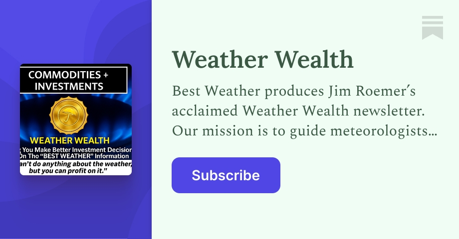 You can now receive occasional free weather and commodity discussions at S U B S T A C K (CLICK HERE)
